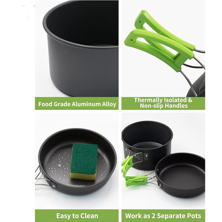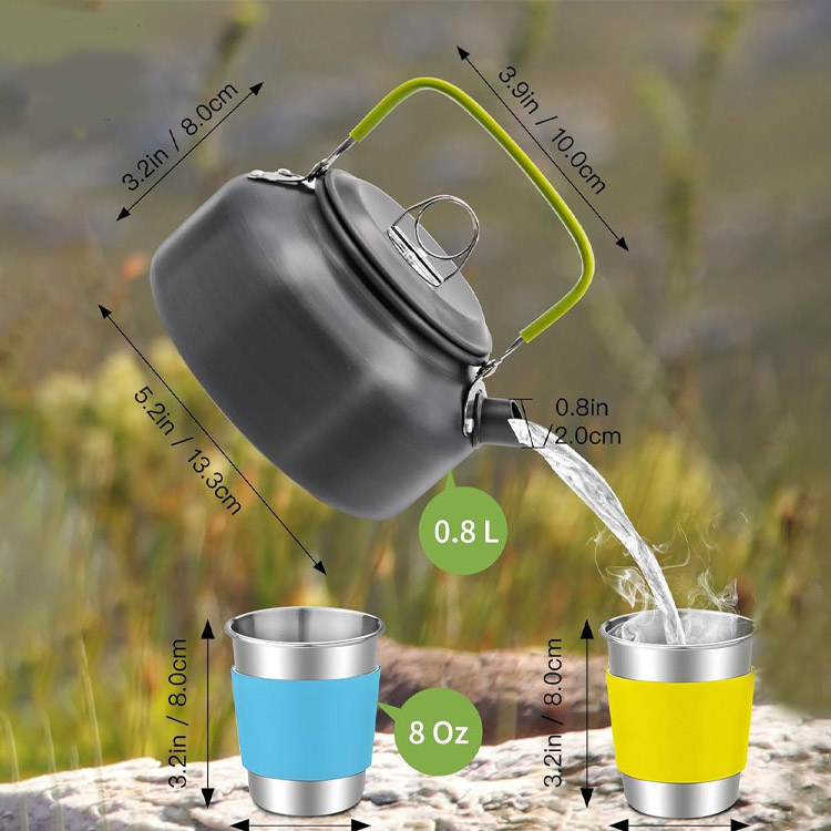 Изготовленная из высококачественного алюминиевого сплава с нетоксичным покрытием, посуда обеспечивает равномерное распределение тепла и выдерживает приготовление пищи на костре, оставаясь при этом безопасной для приготовления пищи.