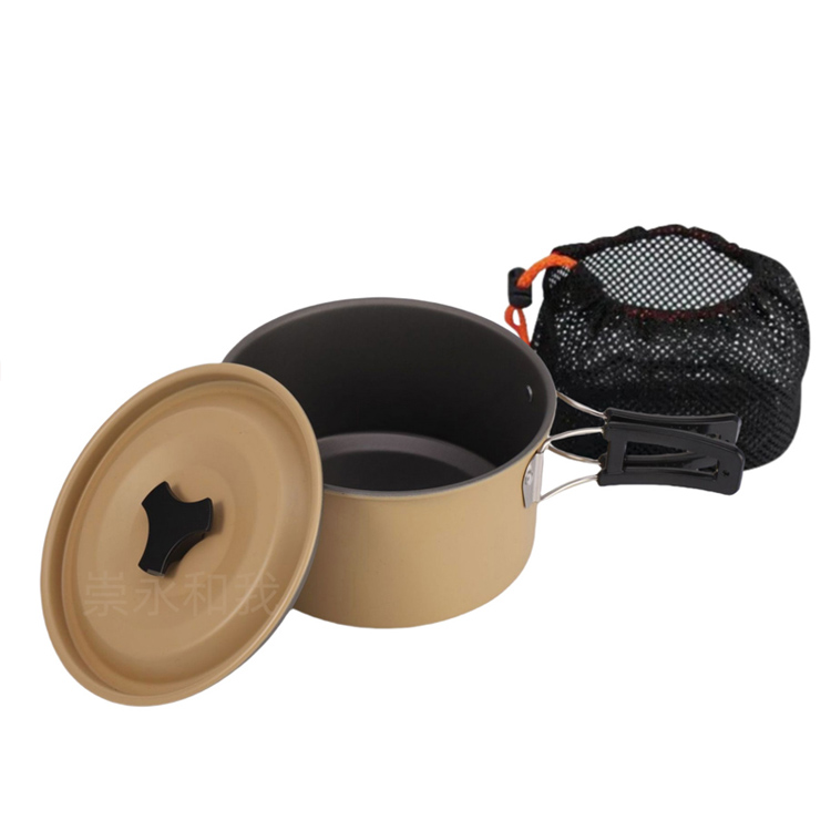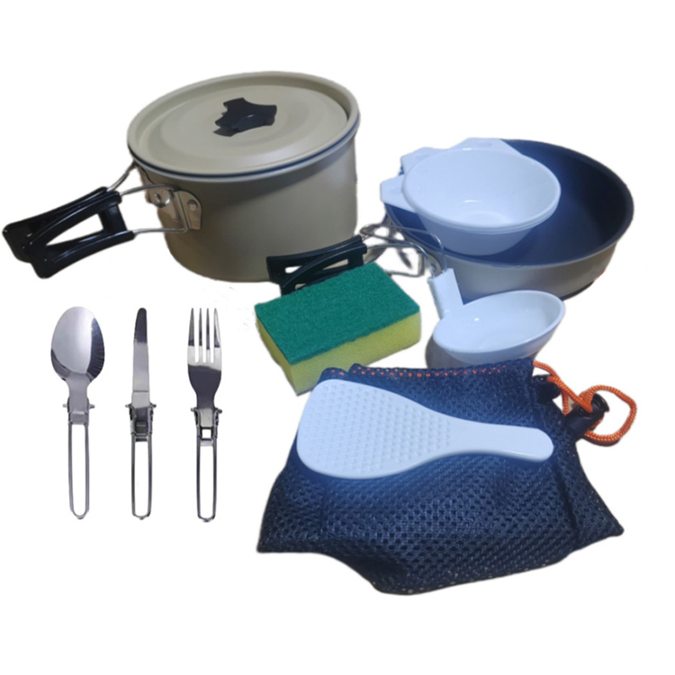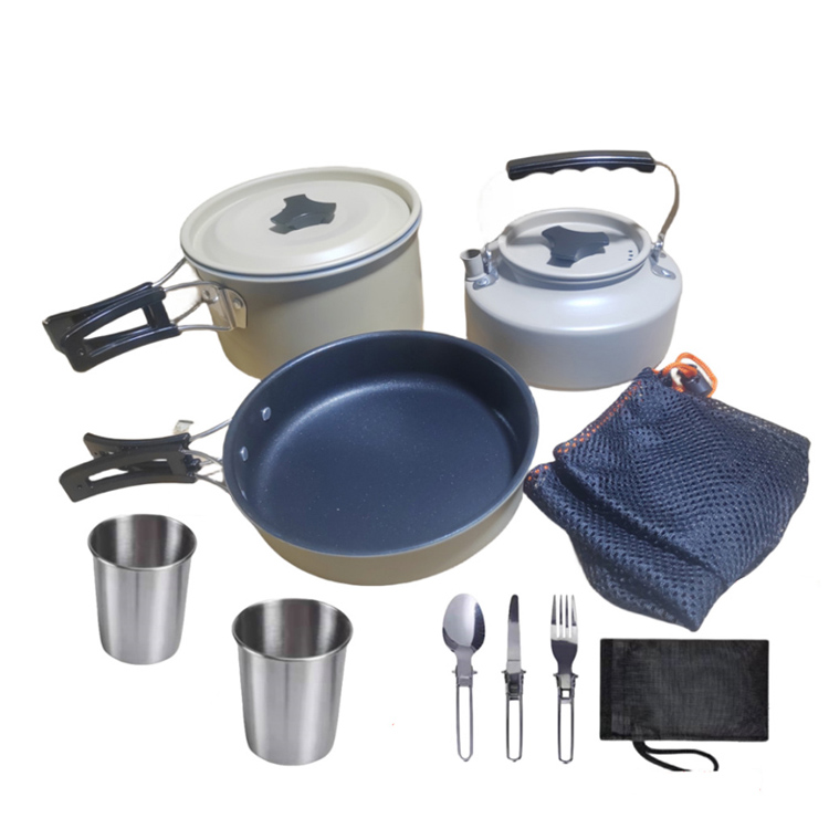 Набор посуды для кемпинга с чайником, портативный набор посуды для приготовления пищи