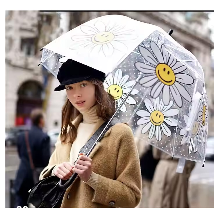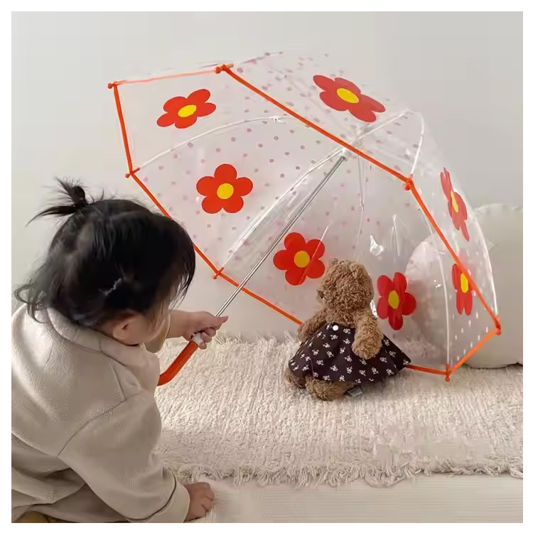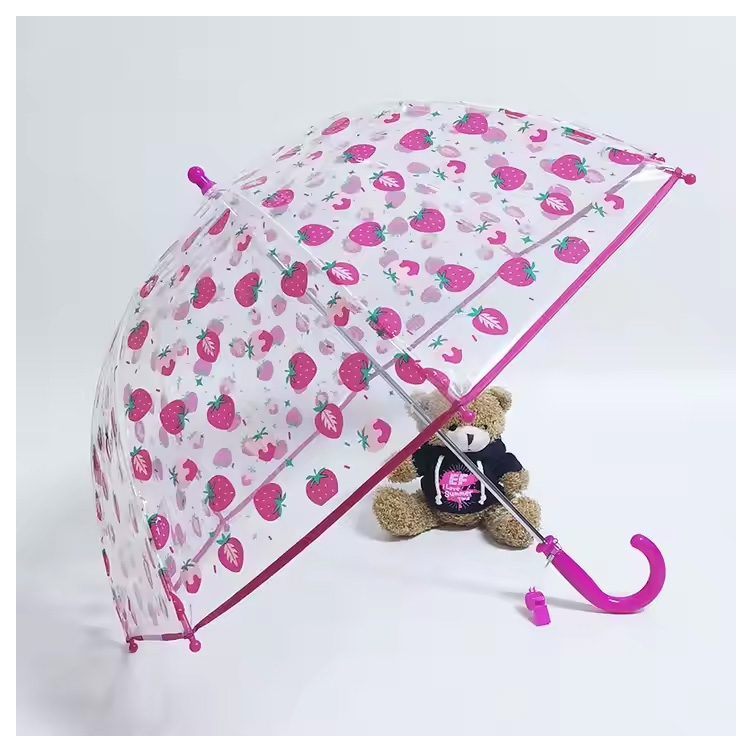 Этот зонт, покрытый яркими игривыми принтами единорогов и радуги, мгновенно привлекает внимание детей. Его прозрачный навес позволяет детям видеть, куда они идут, оставаясь при этом защищенными, что добавляет веселья и волшебства в каждый дождливый день.