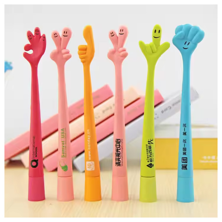 Симпатичная пластиковая шариковая ручка с логотипом диаметром 1,0 мм, напечатанным на заказ。Забавная и красочная шариковая ручка в форме пальца с индивидуальным принтом логотипа. Креативный пишущий инструмент толщиной 1,0 мм, идеально подходящий для детей, рекламных акций, вечеринок или школьных подарков. Прочный пластиковый корпус, плавный поток чернил и милый дизайн, который понравится каждому.