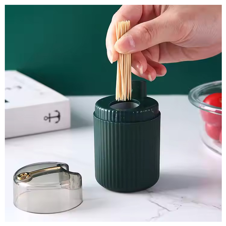 Этот диспенсер, оснащенный умным кнопочным механизмом, при каждом нажатии высвобождает одну зубочистку — никакого контакта и беспорядка. Более гигиеничное и удобное решение по сравнению с традиционными открытыми контейнерами.