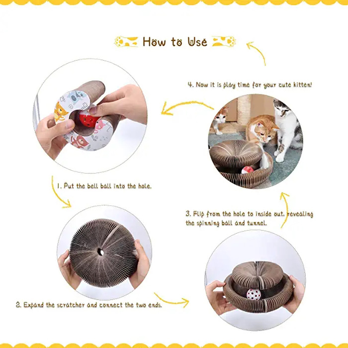 **Дизайн сетки «аккордеон»: в доске для когтеточки для кошек используется двухсторонний двусторонний и растягивающийся дизайн с использованием армированного картона высокой плотности. Вашему котенку понравится эта кошачья когтеточка и кушетка 2 в 1. Что еще более важно, эта конструкция на 50 % более прочная, чем обычная доска для когтеточки, а складная конструкция позволяет легко переносить когтеточку, позволяя котенку играть с ней где угодно.