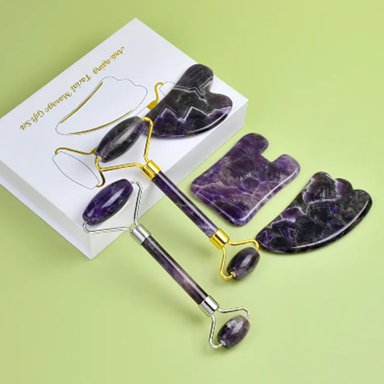 Натуральный аметист нефритовой ролик и набор для лица Gua Sha