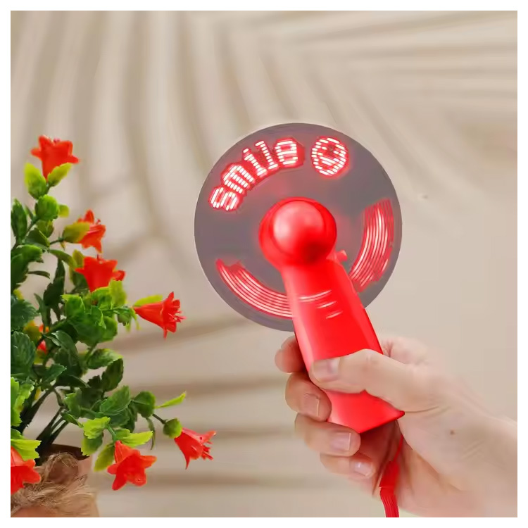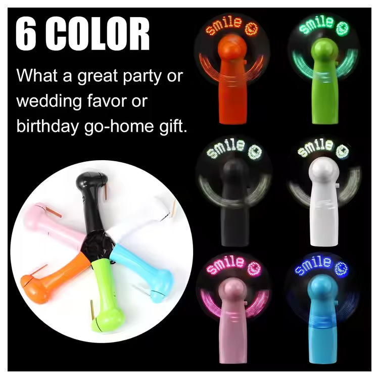 Новый мини-портативный удобный светодиодный вентилятор с аккумулятором для сообщений. Мини-портативный светодиодный вентилятор для сообщений — компактный, с питанием от батареи и настраиваемый с прокруткой текста. Обеспечивает прохладный ветерок при отображении вашего бренда или сообщения с помощью ярких светодиодов. Идеально подходит для мероприятий, вечеринок или рекламных подарков.