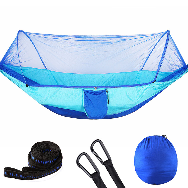 Гамак из нейлоновой ткани, полностью автоматический, быстро открывающийся. Ваш идеальный всесезонный гамак для приключений на свежем воздухе. Этот гамак для кемпинга из нейлоновой ткани оснащен полностью автоматической технологией быстрого открытия и встроенной защитной сеткой. Достаточно универсальный для одноместного или двухместного размещения, он идеально подходит для пеших прогулок, тренировок по выживанию и туристических экспедиций.
