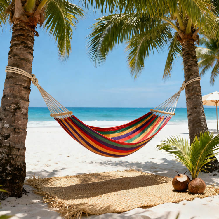 Удобный холщовый гамак на 2 человека для кемпинга на открытом воздухе. Ваш идеальный одиночный побег для приключений на свежем воздухе. Этот одноместный гамак для кемпинга имеет прочную конструкцию из тафты с темными карабинами и регулируемыми ремнями для деревьев. Созданный для максимального комфорта и простоты установки, он станет вашим идеальным компаньоном для отдыха в дикой природе.