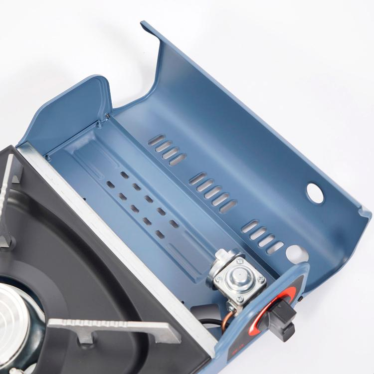Портативная легкая бутановая газовая плита синего цвета. Ваш идеальный портативный помощник в приготовлении пищи. Эта легкая газовая плита с синим бутаном обеспечивает эффективную работу для кемпинга, барбекю и приготовления пищи на открытом воздухе. Благодаря простому ручному управлению он обеспечивает надежное тепло и удобство во всех ваших приключениях.