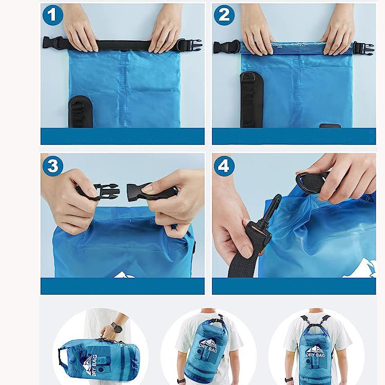 Портативная, удобная в использовании, прозрачная сухая сумка с откидной крышкой. Ваше инновационное водонепроницаемое решение для приключений на свежем воздухе. Этот сухой мешок нового дизайна оснащен прозрачной застежкой-сворачивающейся крышкой для легкой идентификации. Благодаря множеству вариантов размера и портативной конструкции для переноски он идеально подходит для пеших прогулок и различных влажных сред.